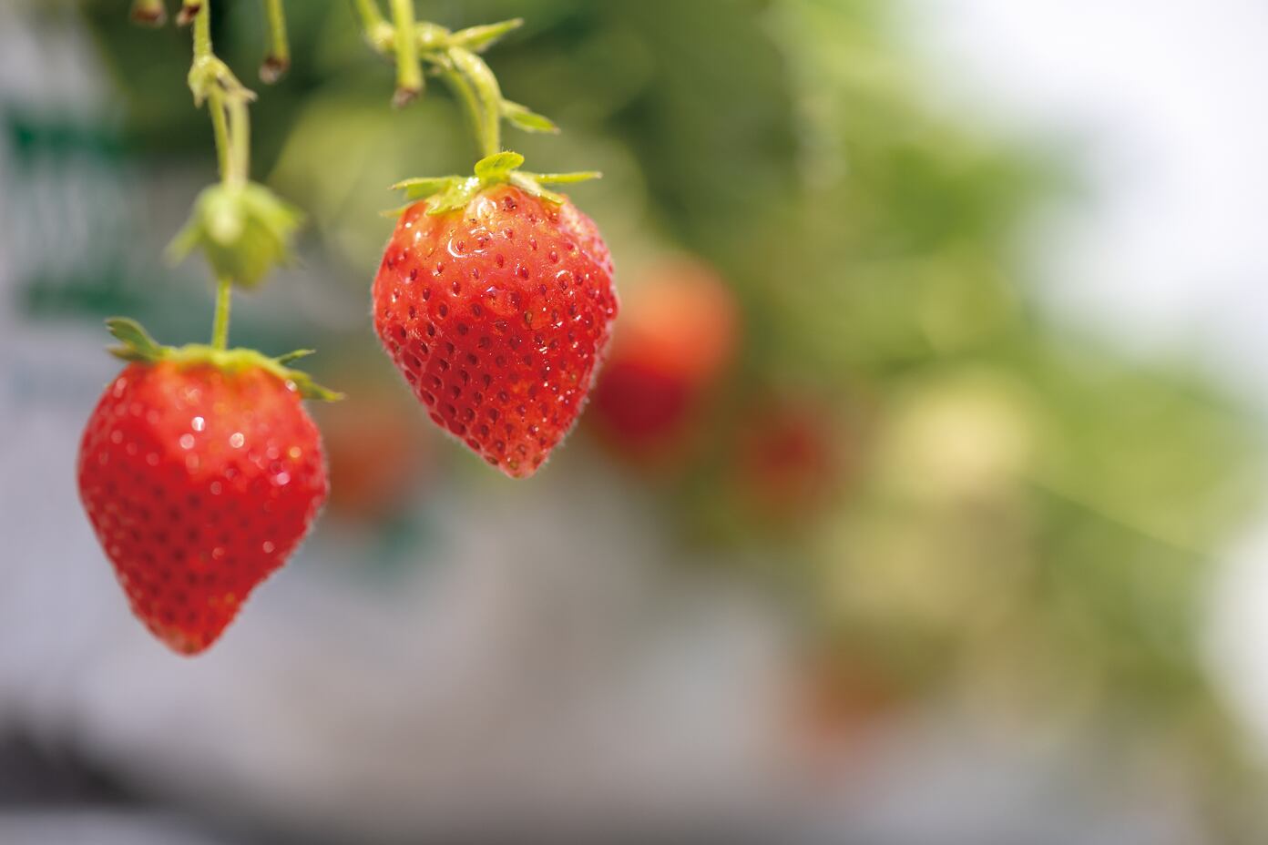 イチゴの根は繊細で、根の活力を維持するために根活(ナノバブル水)を与え、元気な株を育てることで、病気にも強い美味しいイチゴ栽培を実践しています。病害虫防除には天敵の導入や紫外線ランプの導入を行い、農薬をできるだけ減らし、スタッフが丹精込めて日々栽培しています。