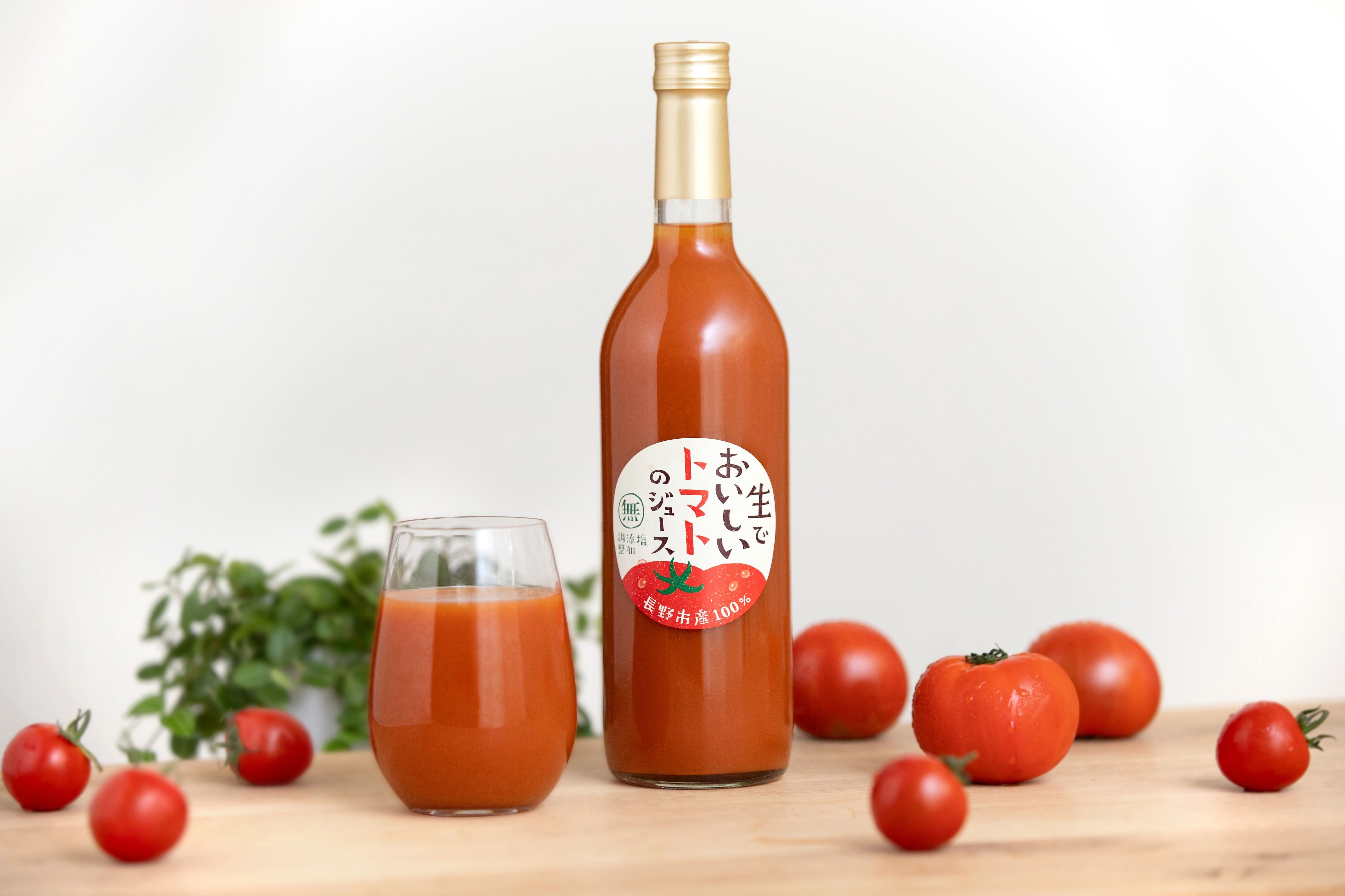 長野ベリーファームで収穫した、旨味のある品種の「ぜいたくトマト」と甘酸っぱい中玉トマト品種の「華小町」「フルティカ」をブレンドしてつくった、飲みやすいストレートタイプのトマトジュースです。